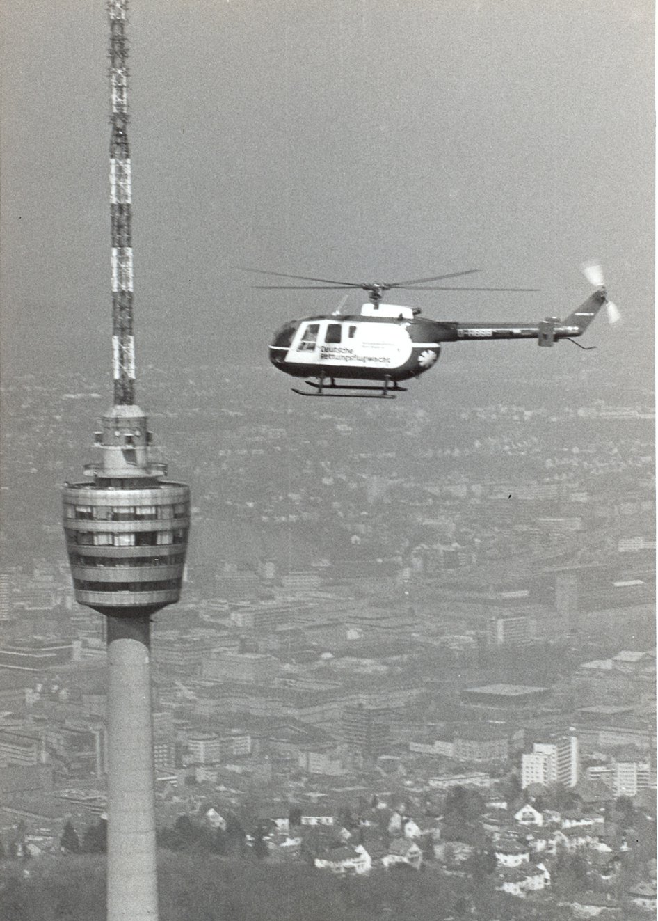 Anfang der 70er-Jahre galt die Luftrettung in der Öffentlichkeit als unnötig, zu teuer und übertrieben. Selbst ein bodengebundener Rettungsdienst existierte praktisch nicht, es gab in den meisten Bundesländern keine einheitliche Notrufnummer, keine Notrufsäulen, kaum Rettungsleitstellen und nur wenige gesetzliche Regelungen – und keine Luftrettung. Mit zunehmender Massenmotorisierung stieg die Zahl der Verkehrstoten 1970 auf einen Rekord von fast 20.000 pro Jahr. Um dieser unhaltbaren Situation etwas entgegen zu setzen, wurde am 6. September 1972 die heutige DRF Luftrettung unter dem Namen „Deutsche Rettungsflugwacht e. V. German Air Rescue“ – abgekürzt „DRF“ – in Stuttgart-Echterdingen gegründet. Gründungsmitglieder waren Dr. med. h. c. Fritz Bühler, lna von Koenig, Günter Kurfiss, Klaus Müller, Alexander Piltz, Siegfried Steiger und Dr. med. Jan Zahradnicek. Am 19. März 1973 leisteten die Luftretter im Großraum Stuttgart dann den ersten Einsatz ihrer Geschichte.