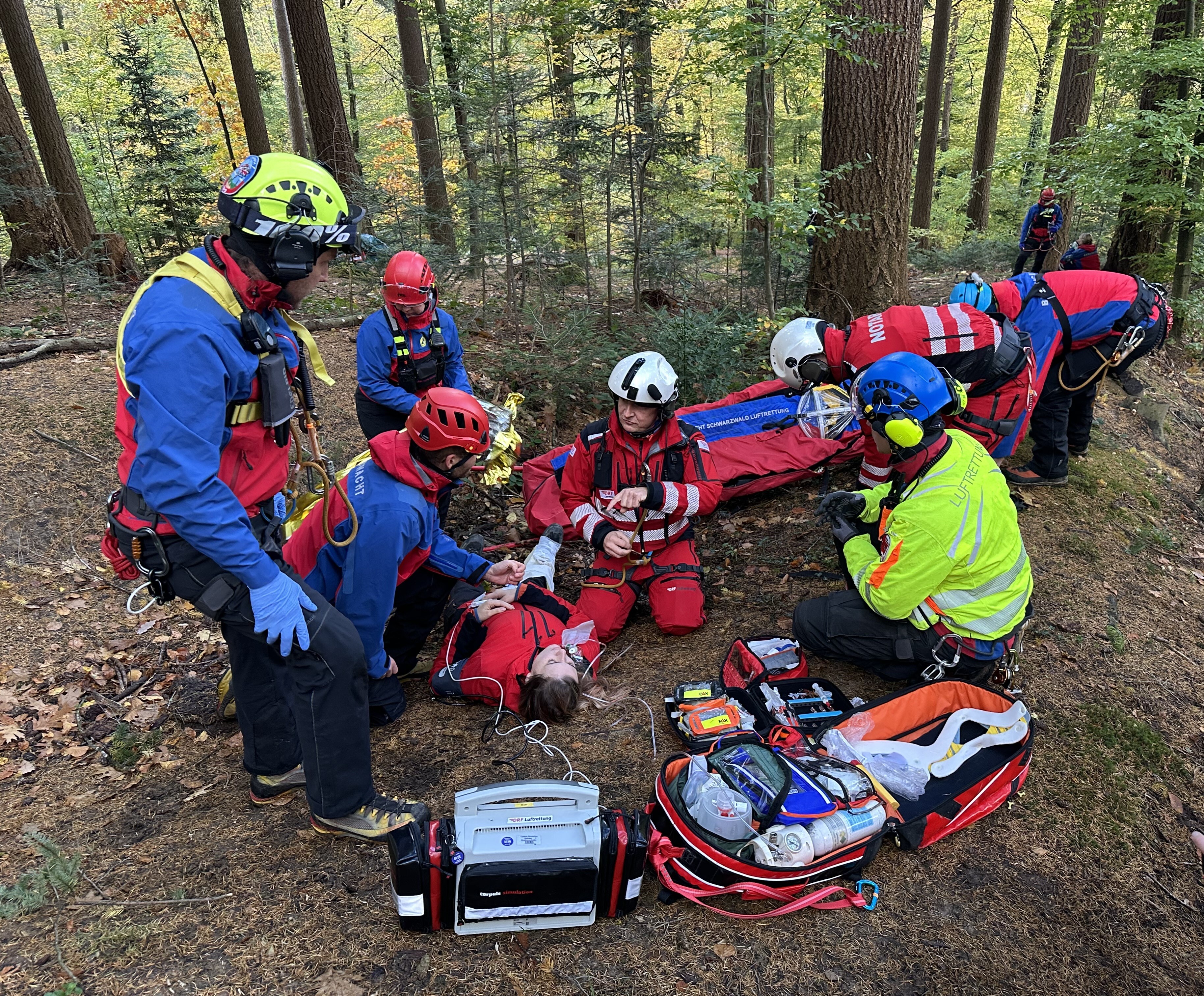 Perfektes Zusammenspiel rettet Leben: Das Herbsttraining stärkt Abläufe und Vertrauen zwischen der DRF Luftrettung und ihrer Partner. (Quelle: DRF Luftrettung)