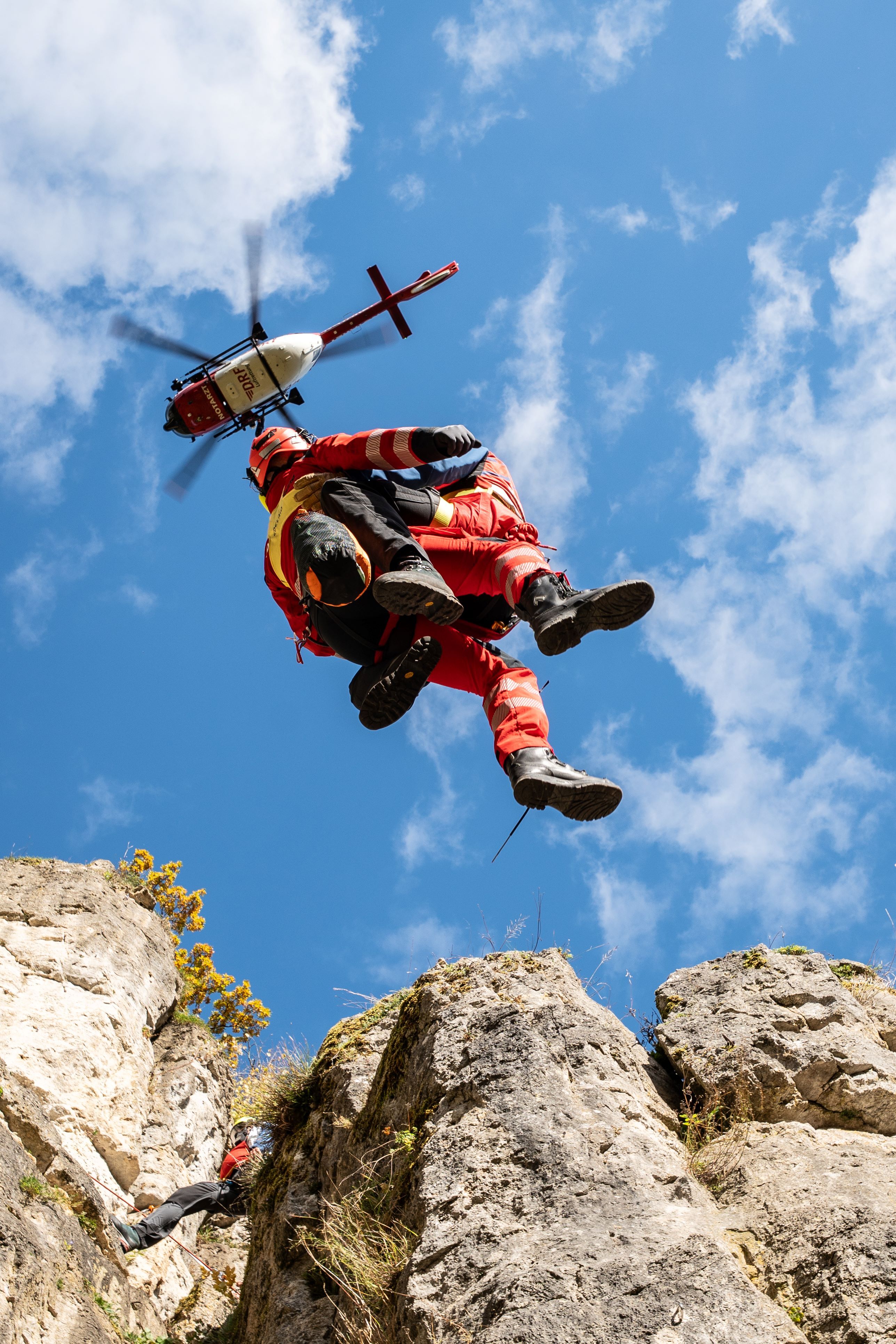 „Oft ist die Winde die einzige Möglichkeit, Patientinnen und Patienten schnell und schonend aus unzugänglichen Gebieten zu retten. Im Sommer werden wir häufig zu Kletterunfällen in der Fränkischen Schweiz angefordert, im Herbst und Winter sind es eher Wanderer oder Forstarbeiter, denen wir mit der Winde schnelle notärztliche Hilfe bringen können“, erklärt Dominic Fischer, Windenausbilder der DRF Luftrettung. „Wir bedanken uns insbesondere bei unseren Partnern, der Höhenrettungsgruppe und der Bergwacht, für die tolle Vorbereitung und den reibungslosen Ablauf des Trainings. Das diesjährige Training war wieder sehr wertvoll – jede Übung bringt neue Erkenntnisse und stärkt das Vertrauen im Team.“